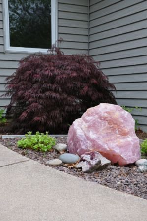 Speciálisan díszítőelemként rózsakvarc és zöldkvarc kristályok mellett egyéb ásványi anyagokat használunk az új vagy az átalakítandó kert létrehozásánál.
